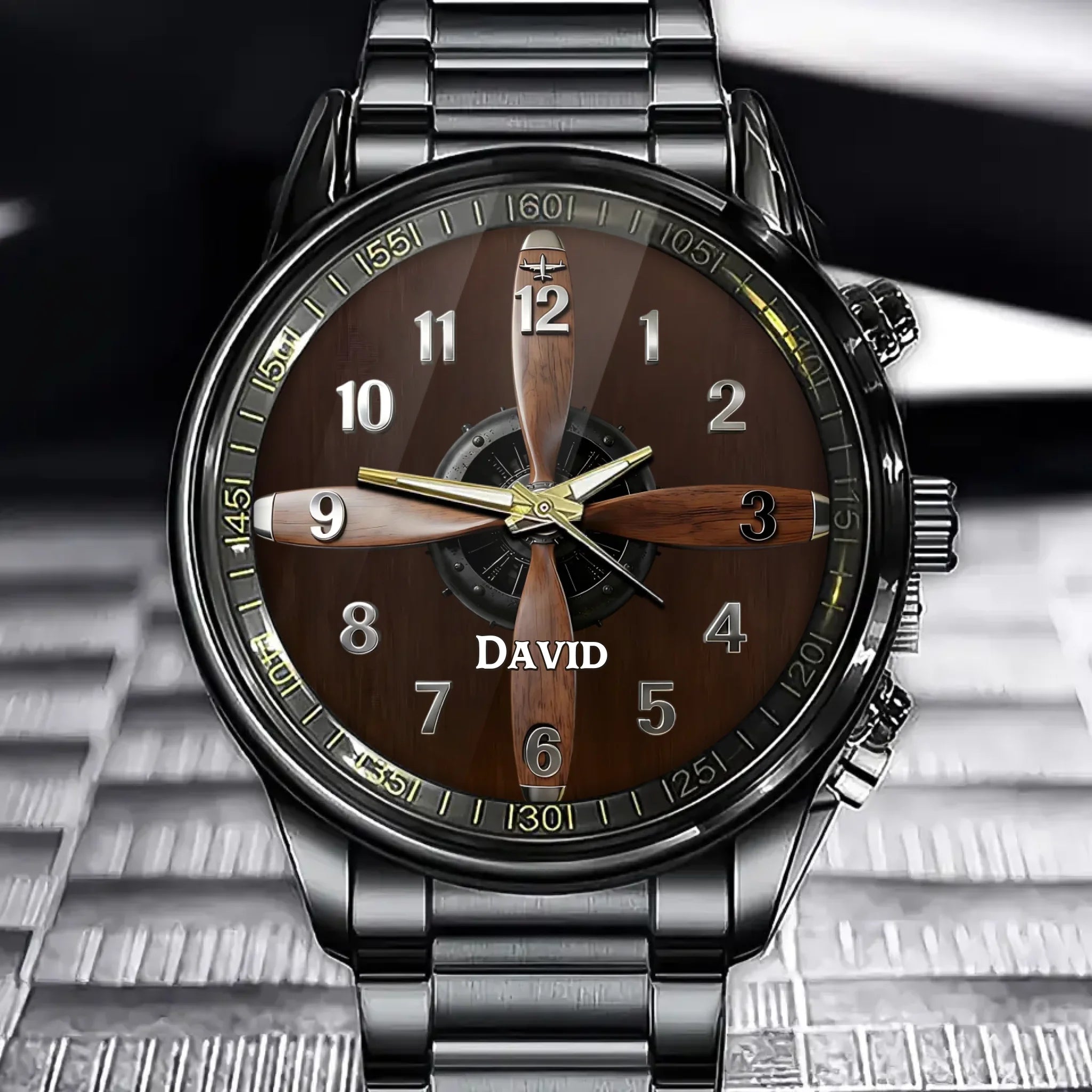 Personalized Airplane Theme Watch - Propeller Design with Custom Name Personalization