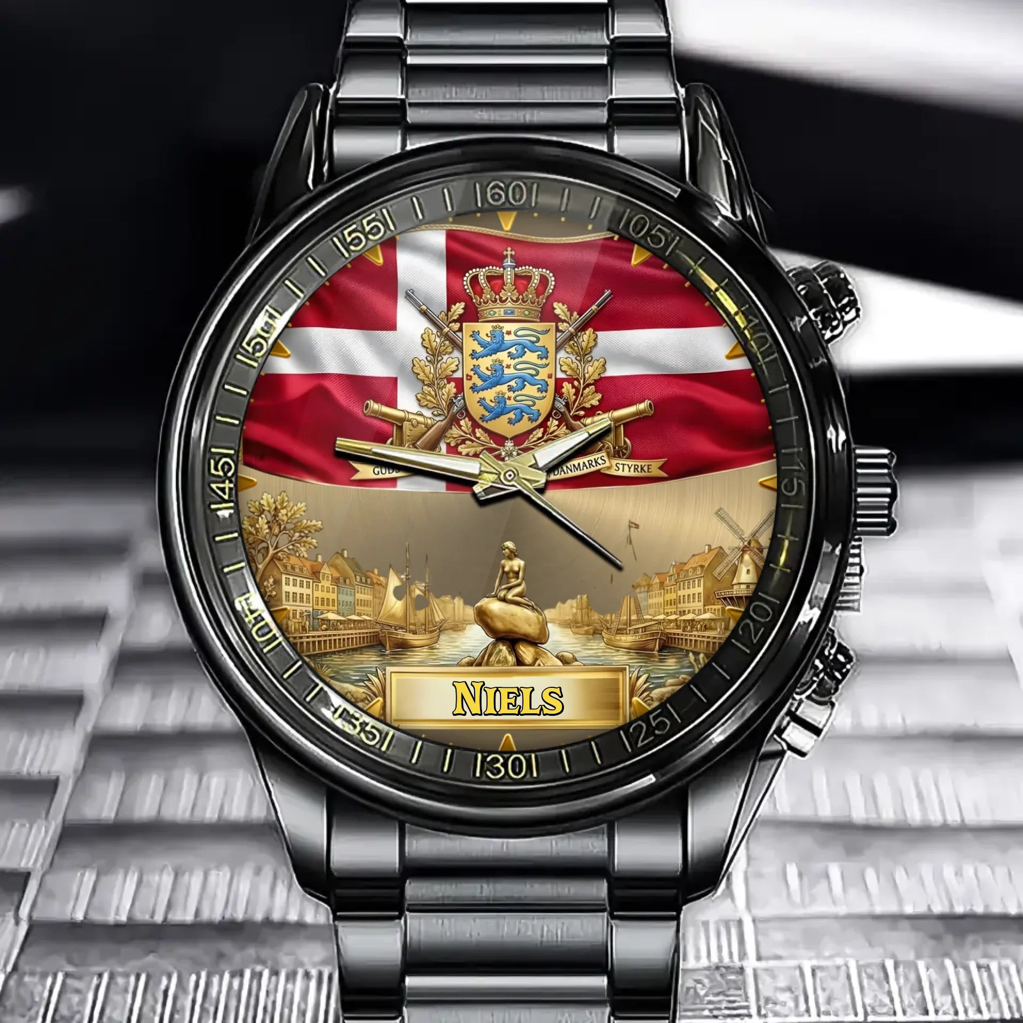 Personalized Denmark Coat Of Arms Watch - Custom Engraving For National Pride