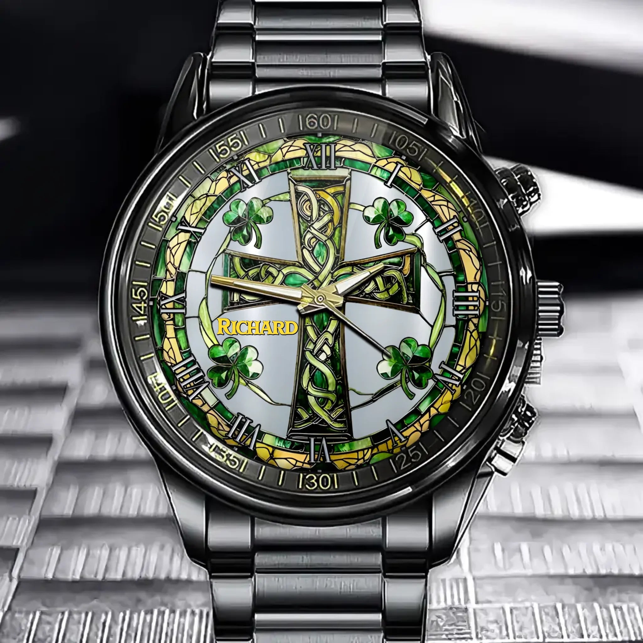 Personalized Irish Hand Watch-Celtic Cross Shamrock