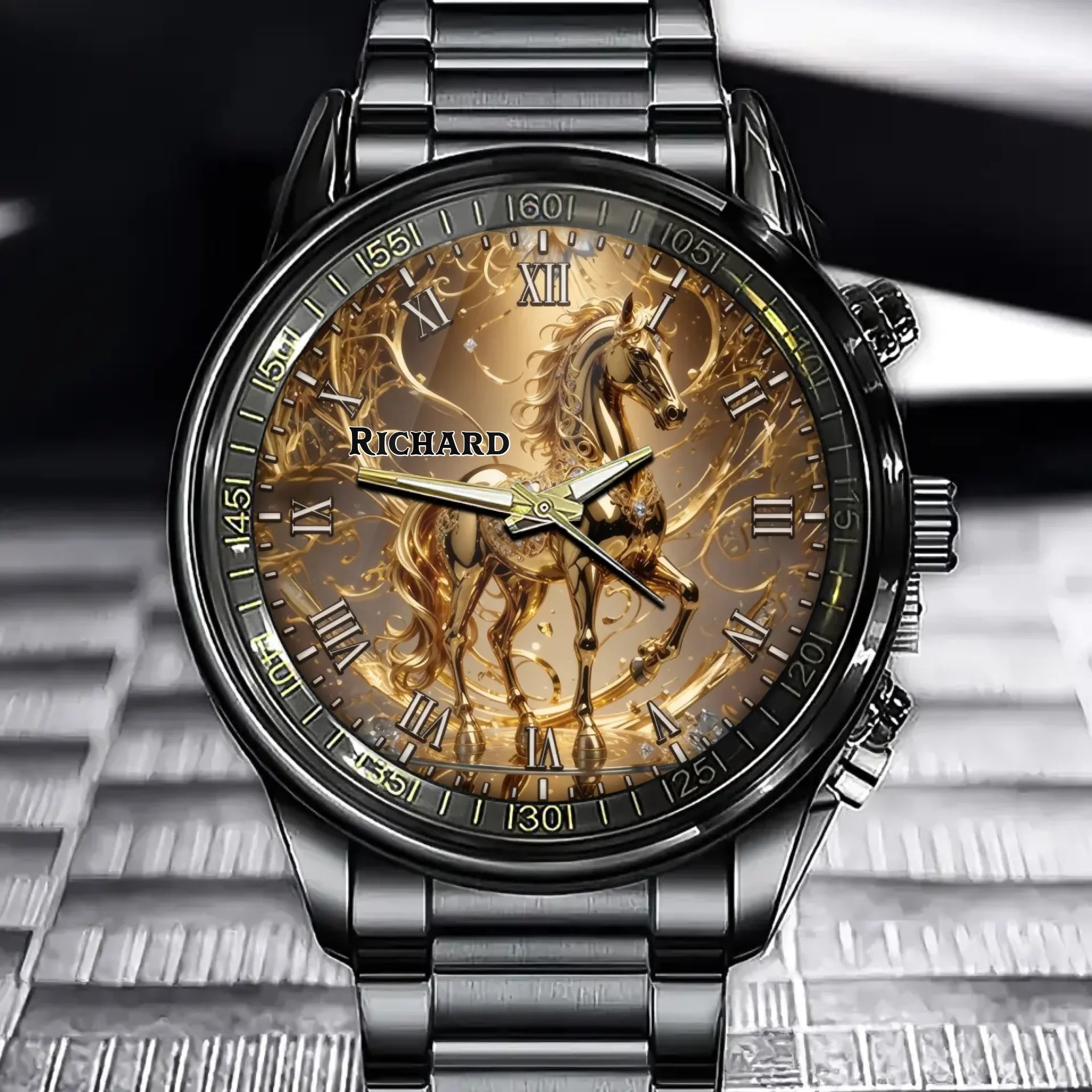 Personalized Luxury Horse Diamond Watch – Custom Name & Color Choice