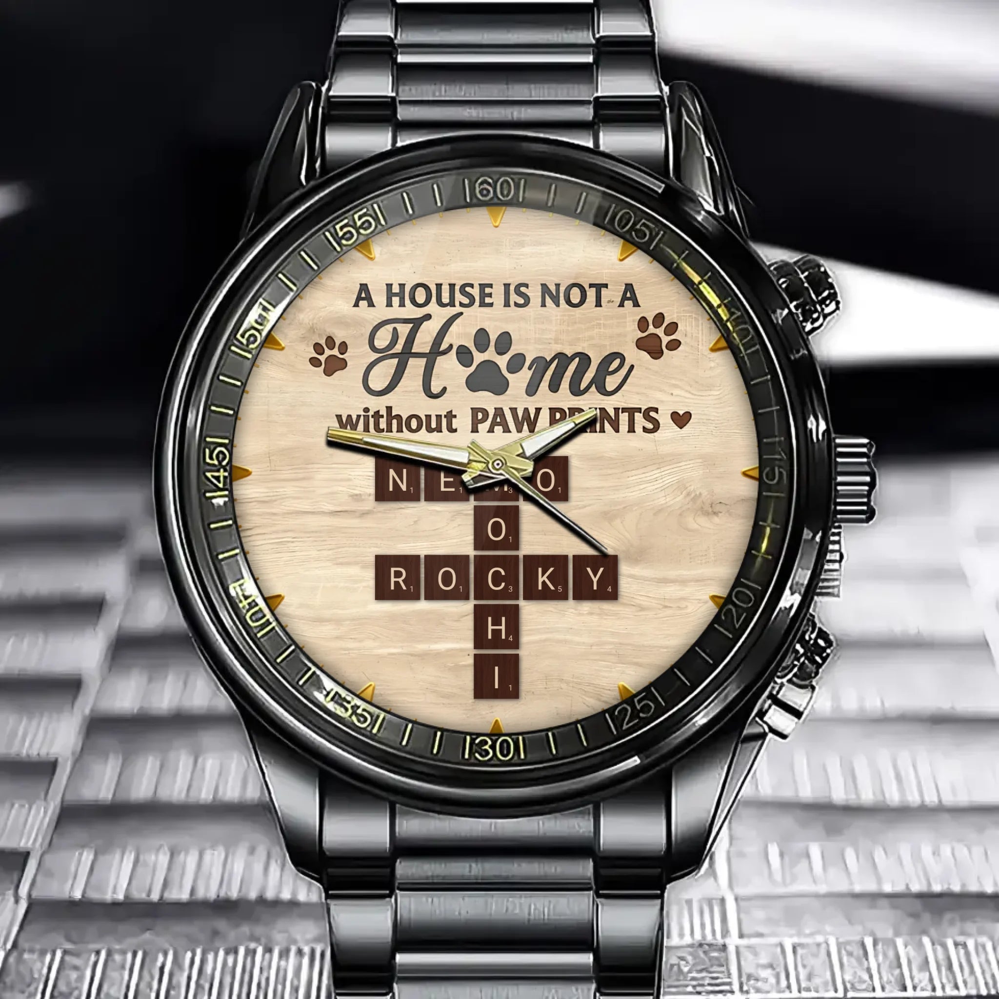 Personalized Pet Lover Watch - Custom Name & "Home with Paw Prints" Design, Perfect Gift for Dog/Cat Owners