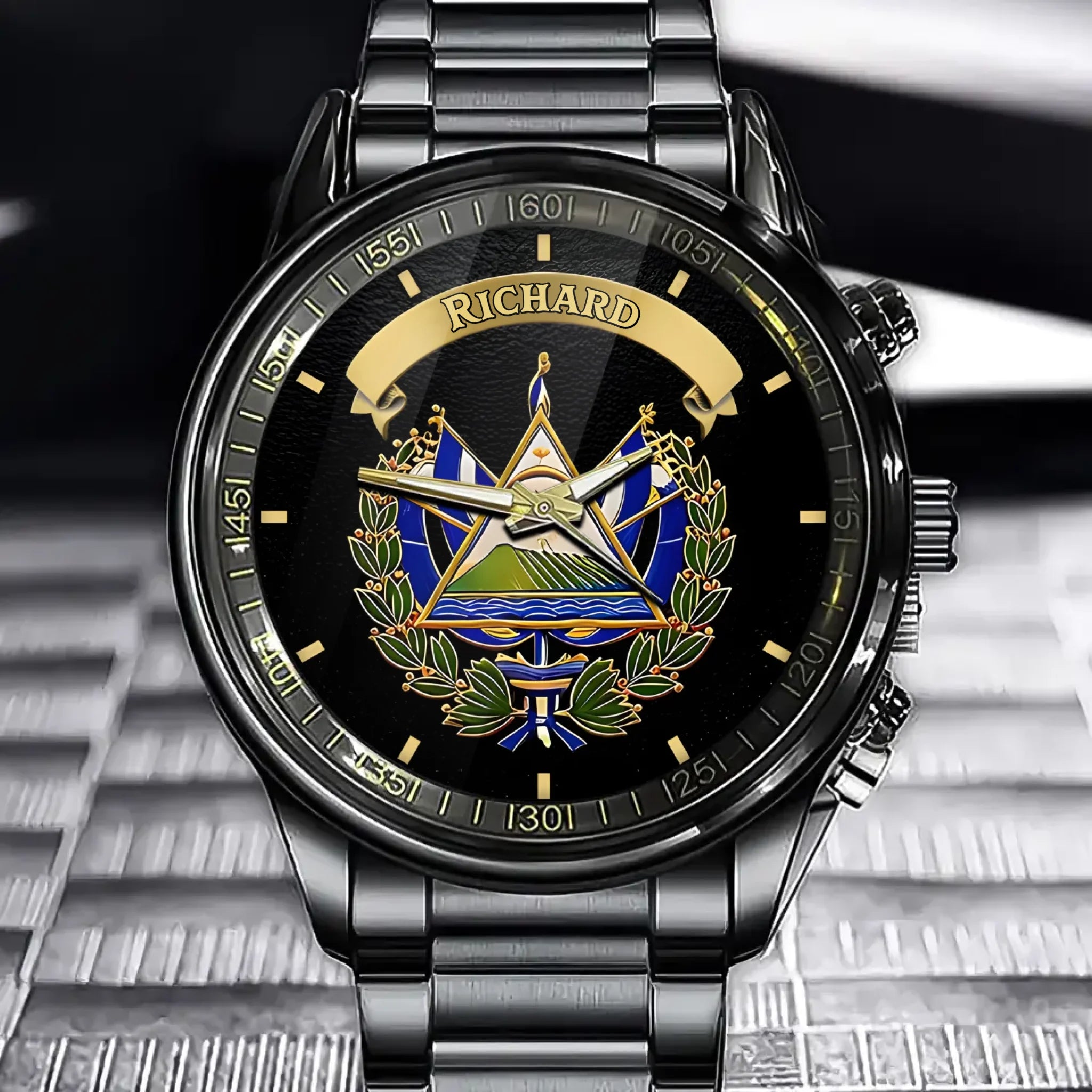 Personalized Proud El Salvador Watch - Expats Themed Hand Watch with Custom Name Option