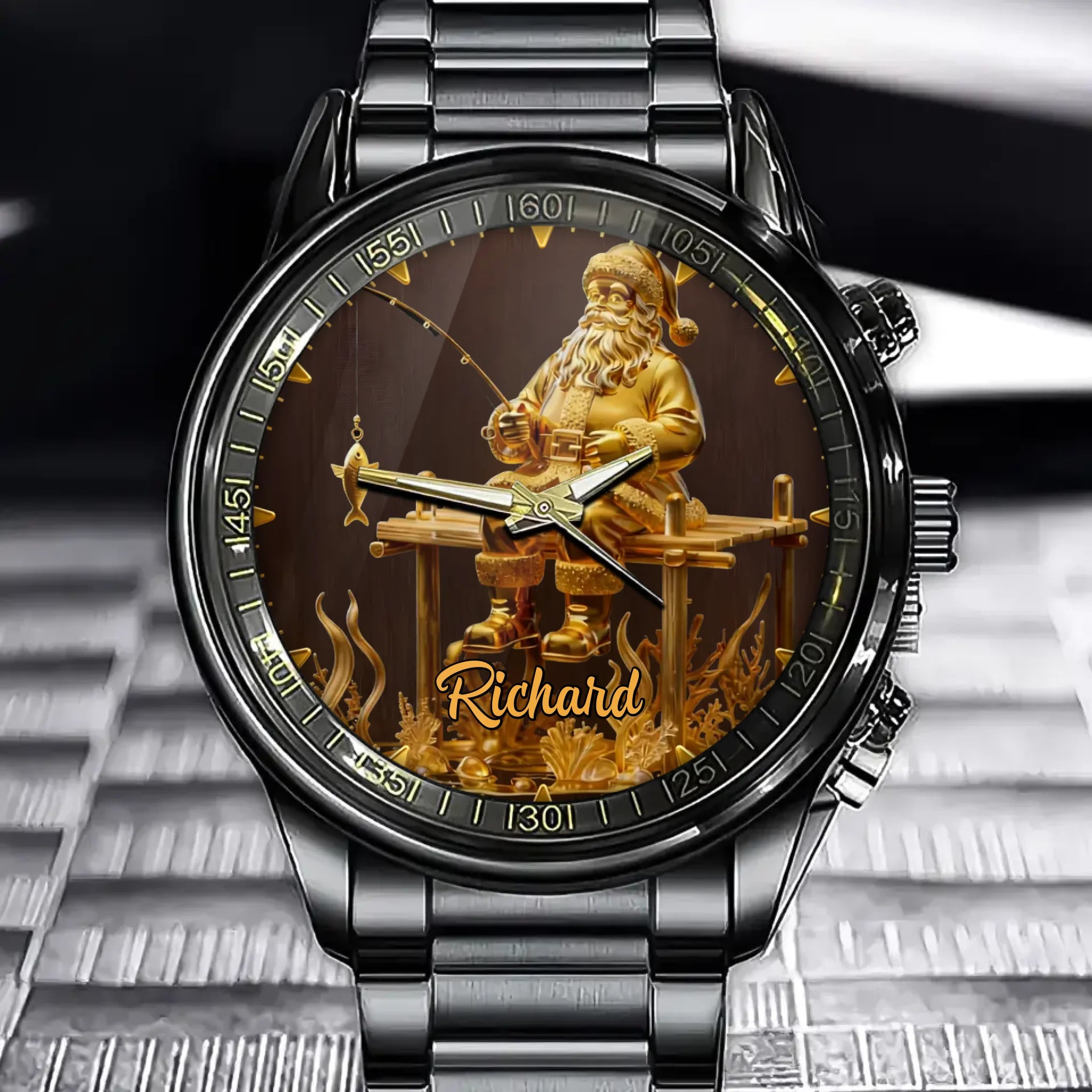 Personalized Santa Fishing Scene Watch – Unique Santa Dial for Special Gifts