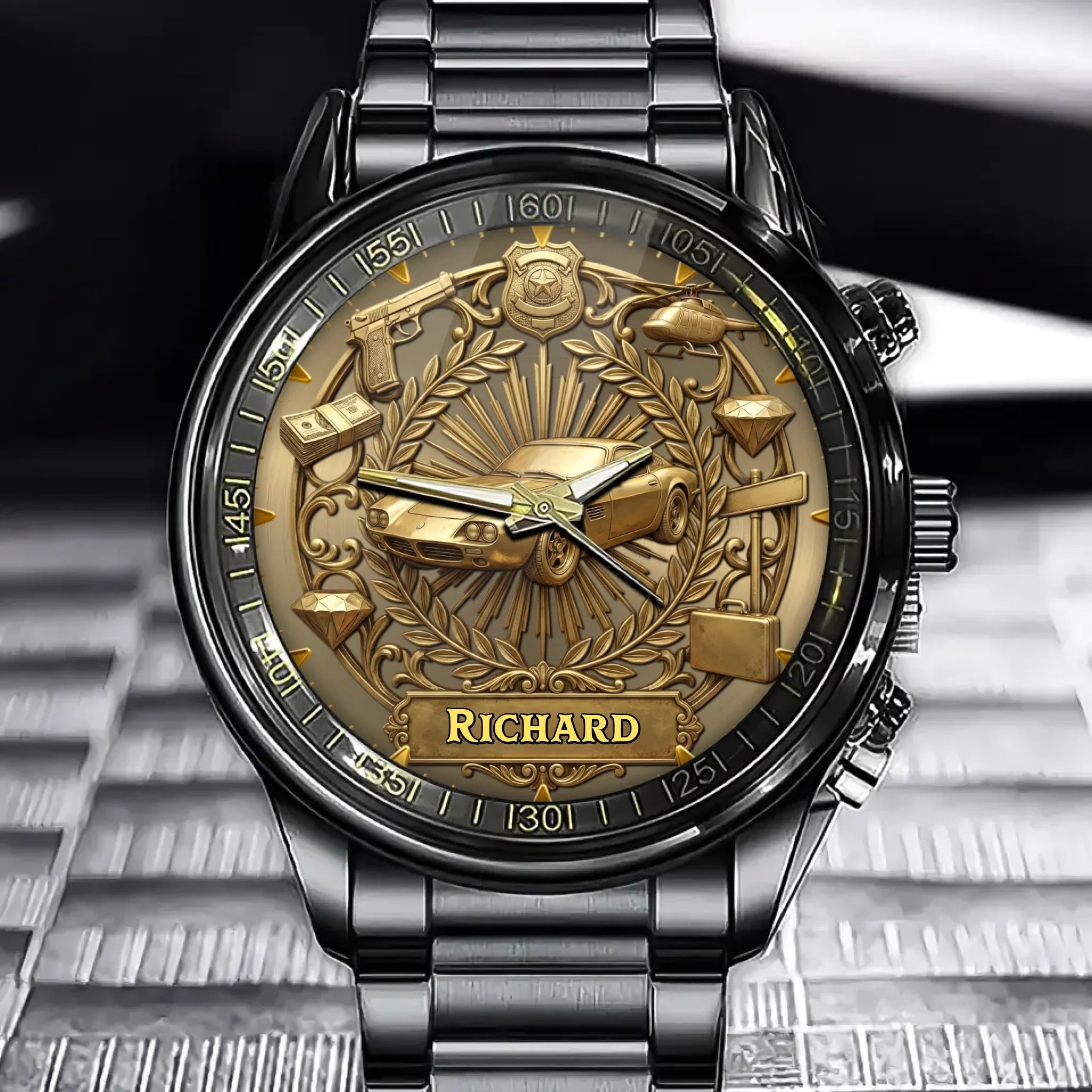 Personalized Urban Heist Watch – Add Your Name, Crime & Luxury Theme