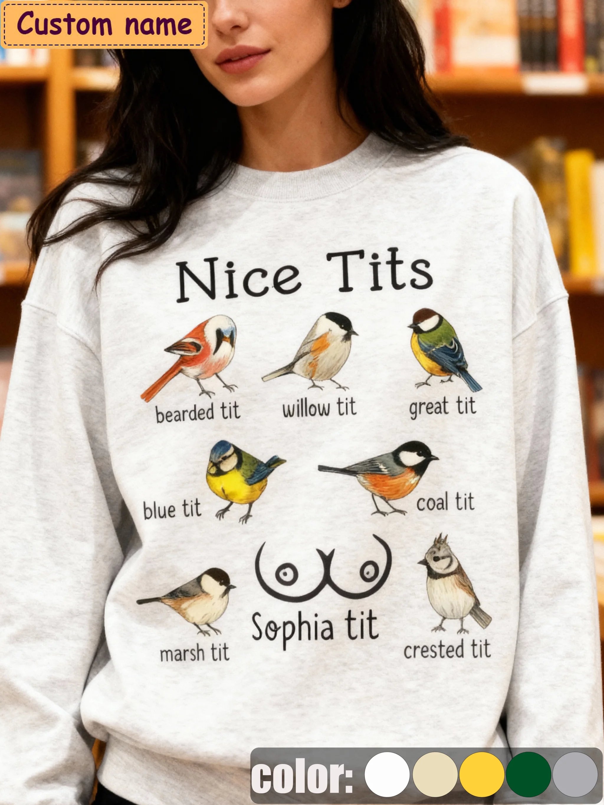 "Nice Tits" Bird Collection Sweatshirt - Personalizable Name Crew Neck Shirt for Avian Enthusiasts