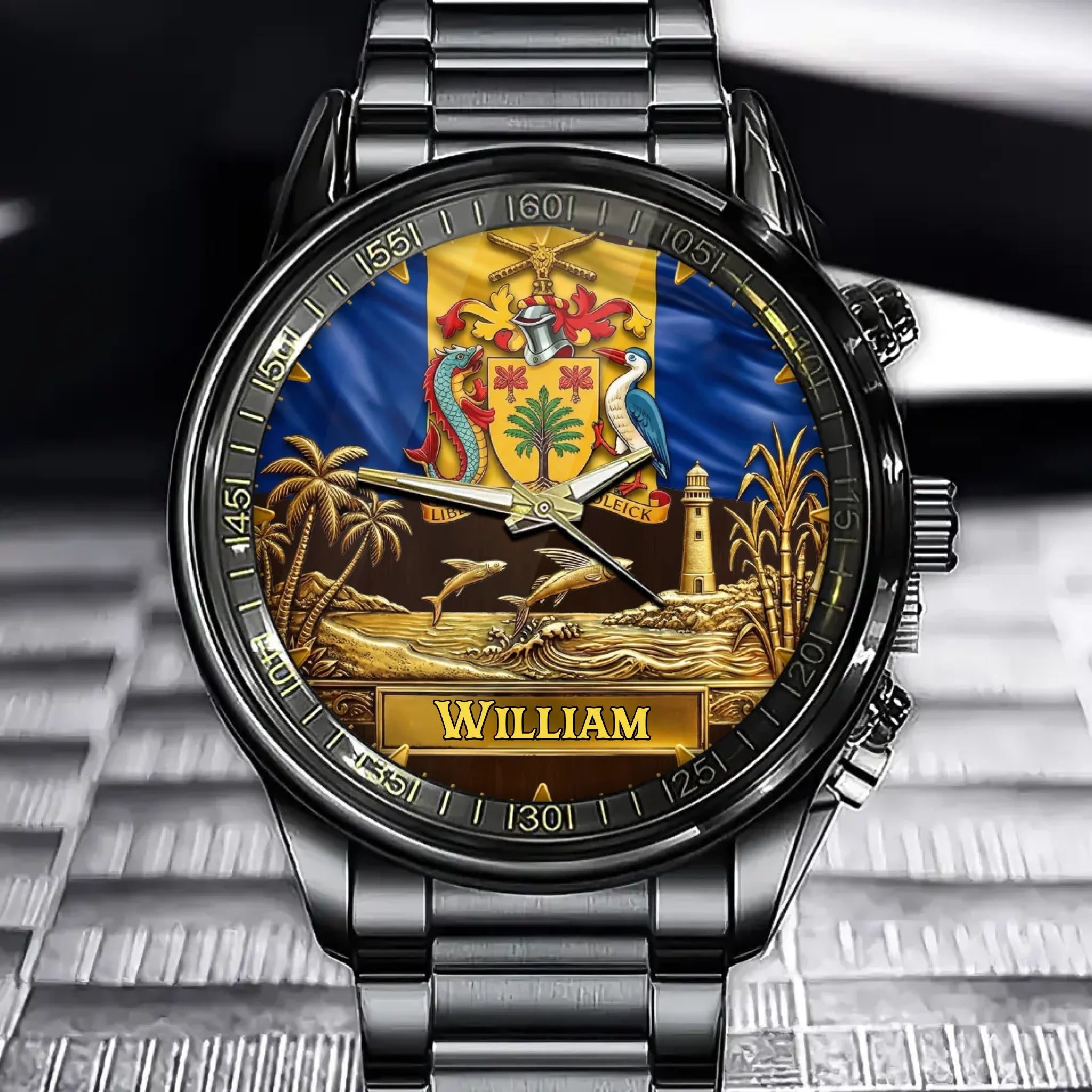 Personalized Barbados Coat of Arms Watch - A Timeless Symbol of National Pride