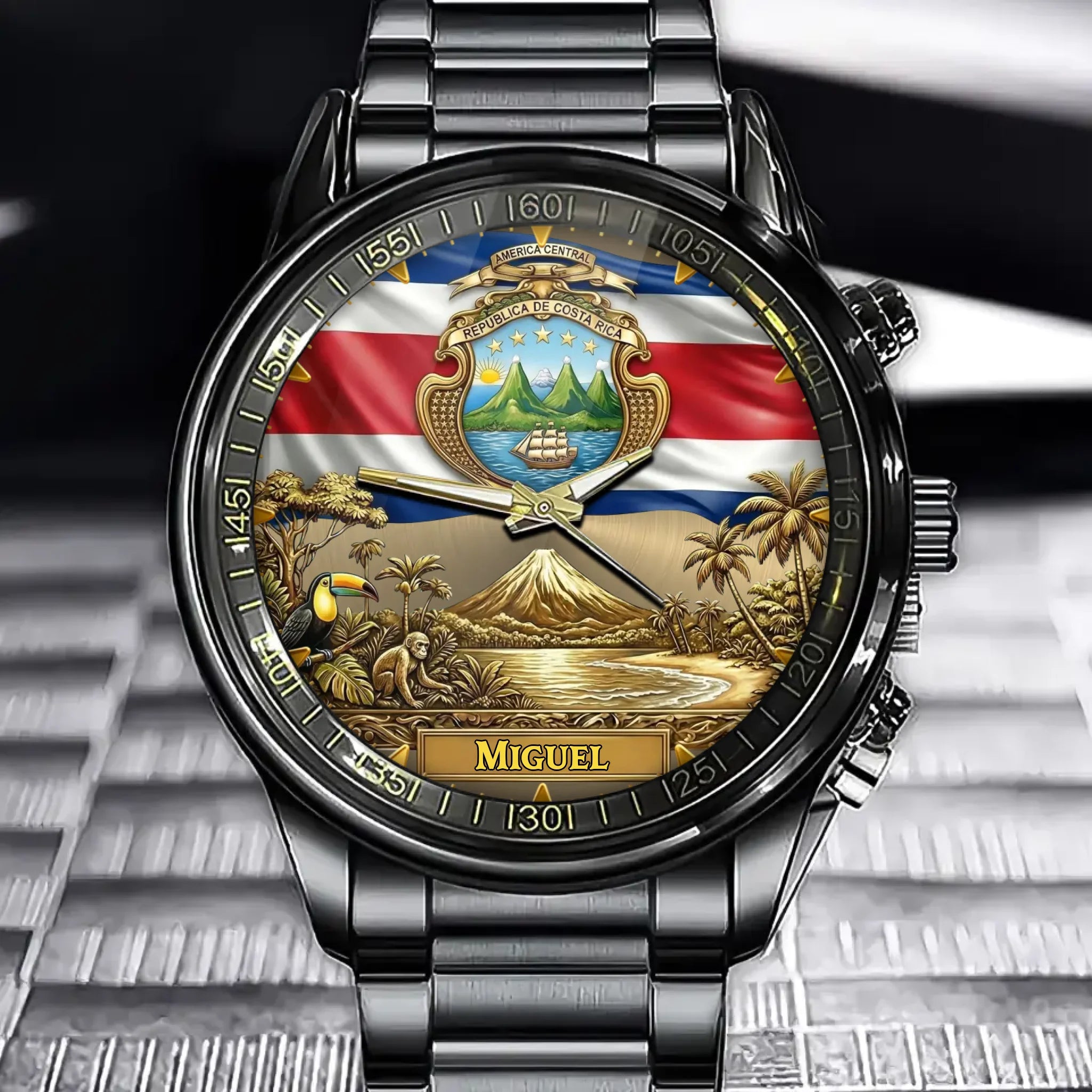 Personalized Costa Rica Coat Of Arms Watch – Custom Name For Proud Ticos