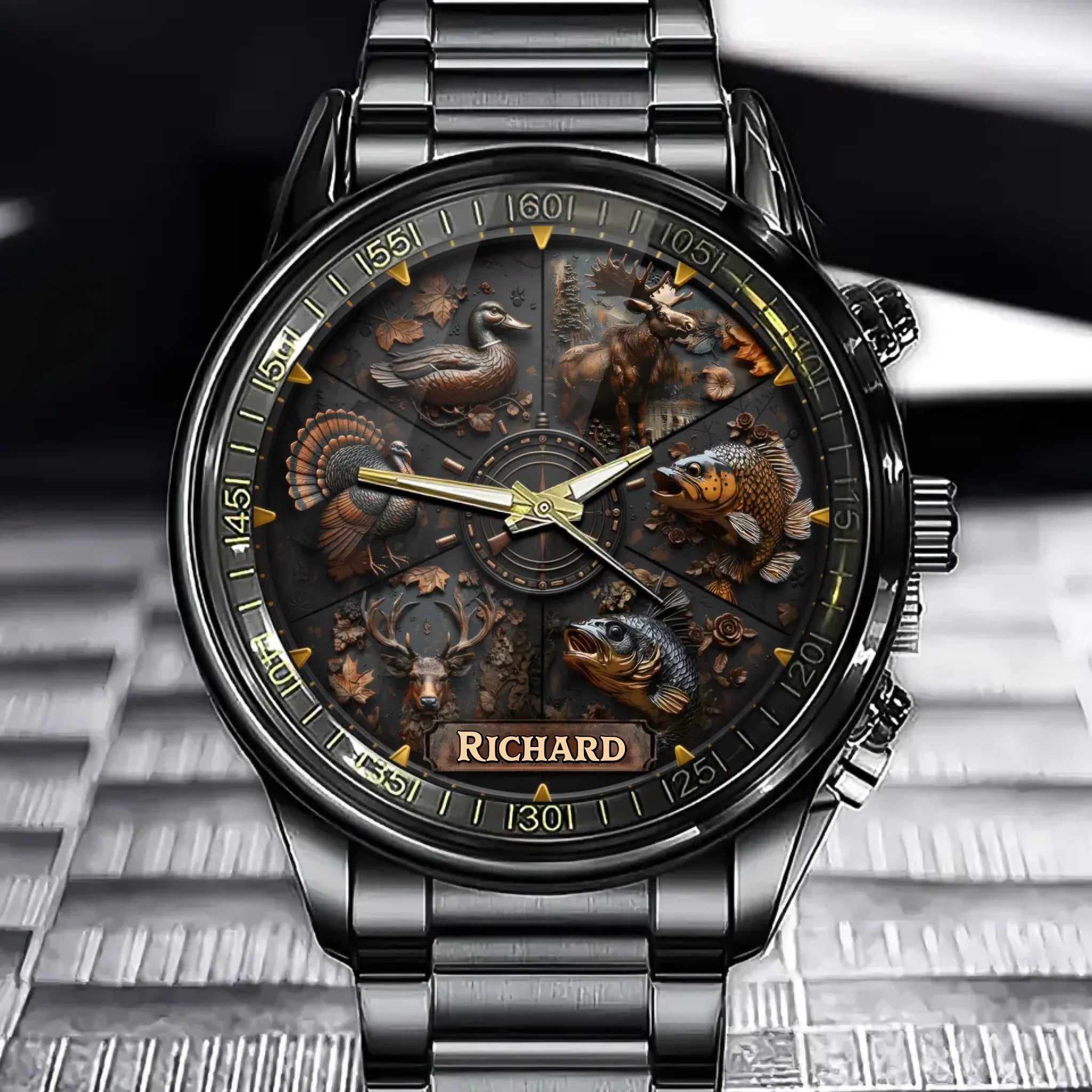 Personalized Hunting Life & Fishing Watch – Custom Name Outdoor Enthusiast Gift