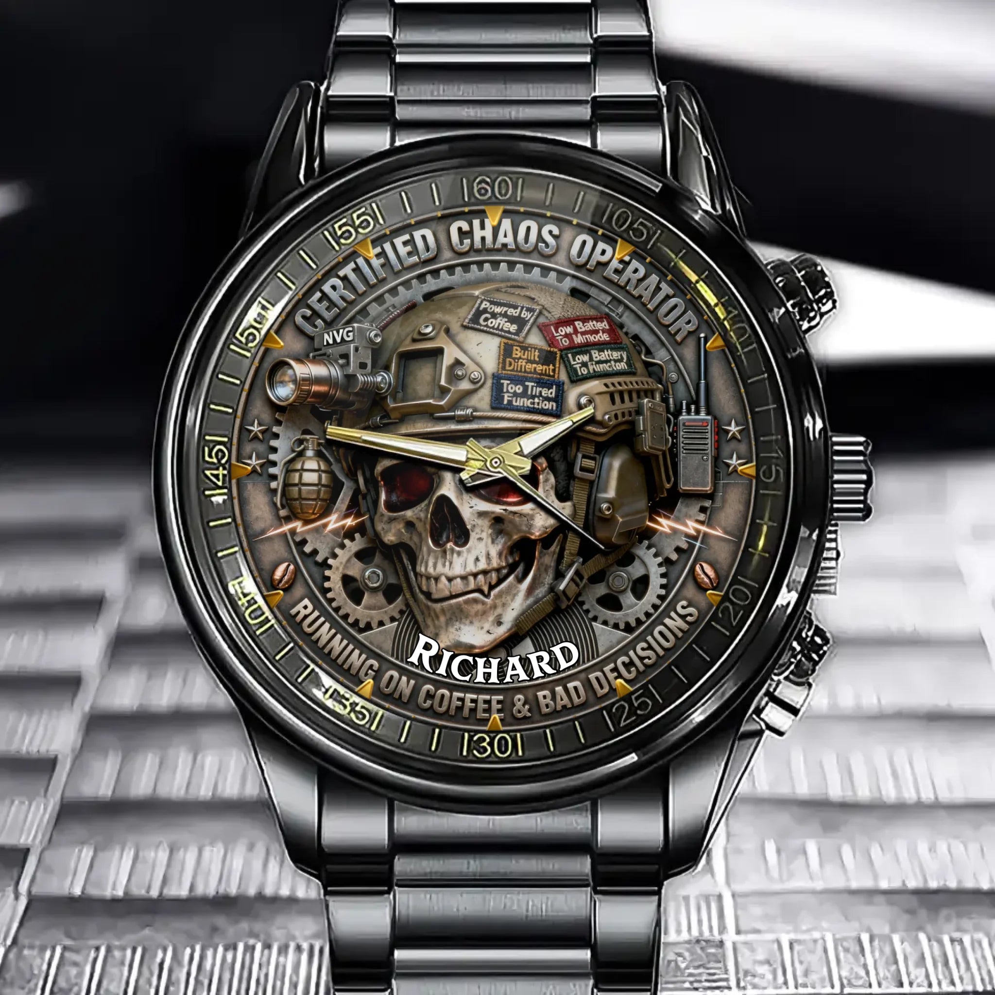Personalized Mechanical Style Watch Series - "Chaos & Tough Life" Theme with Custom Name