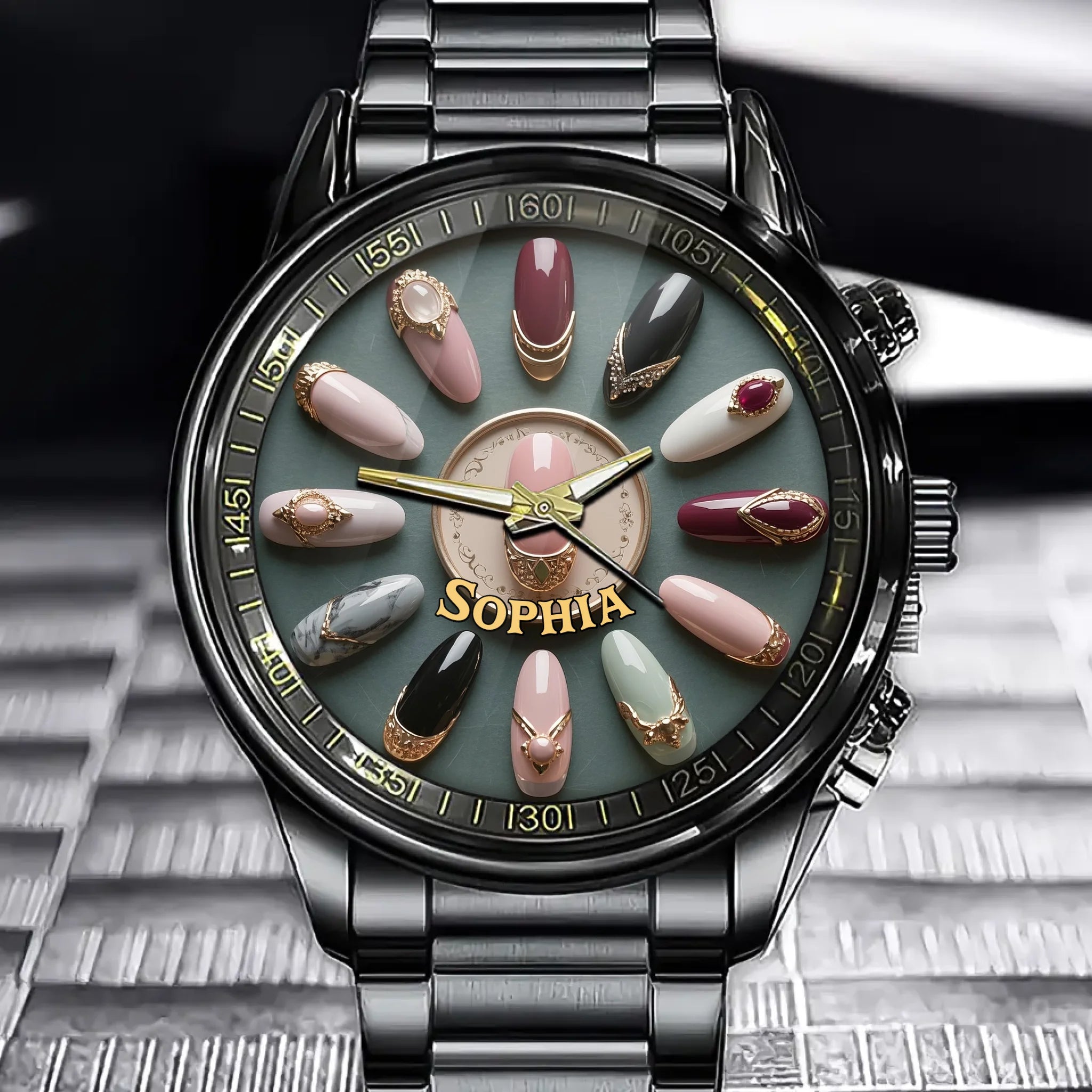 Personalized Nail Art Watch - Customizable Name Fashion Timepiece