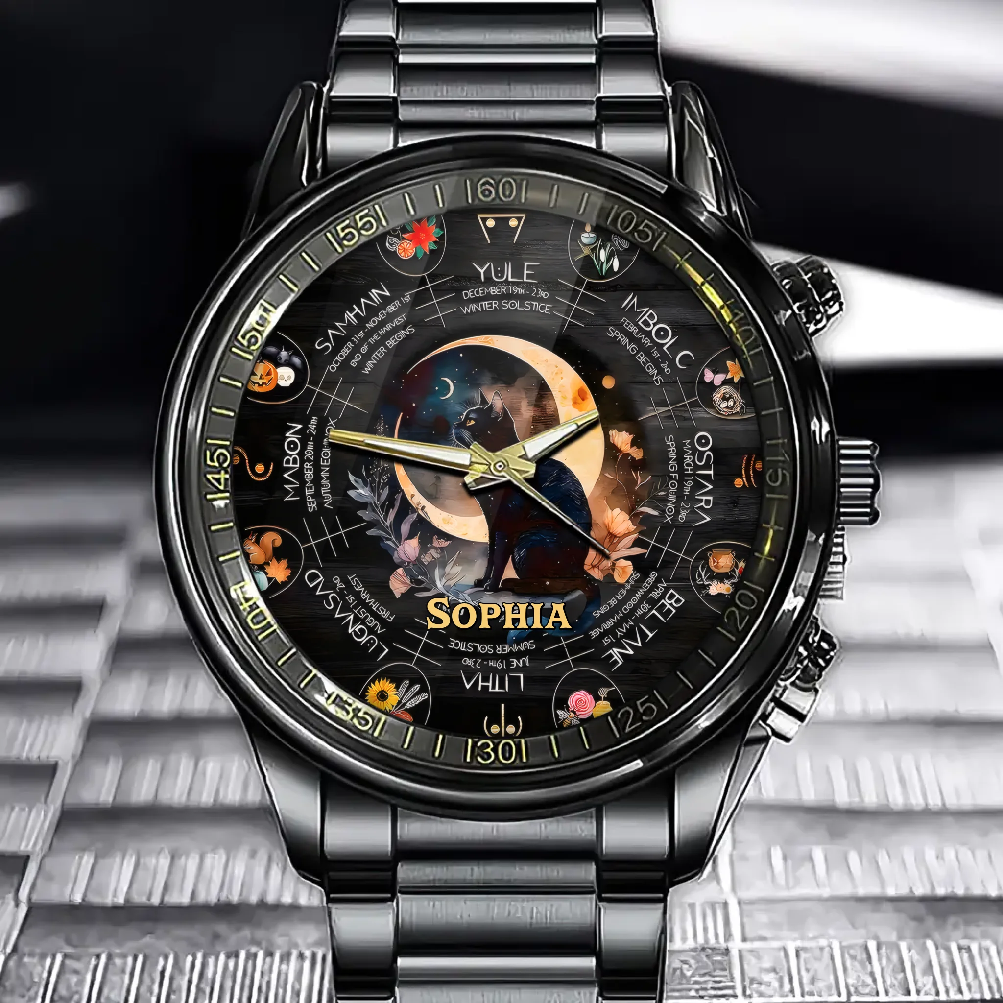 Personalized Pagan Calendar Black Cat Witch’s Watch – Custom Name Witch’s Festival Edition