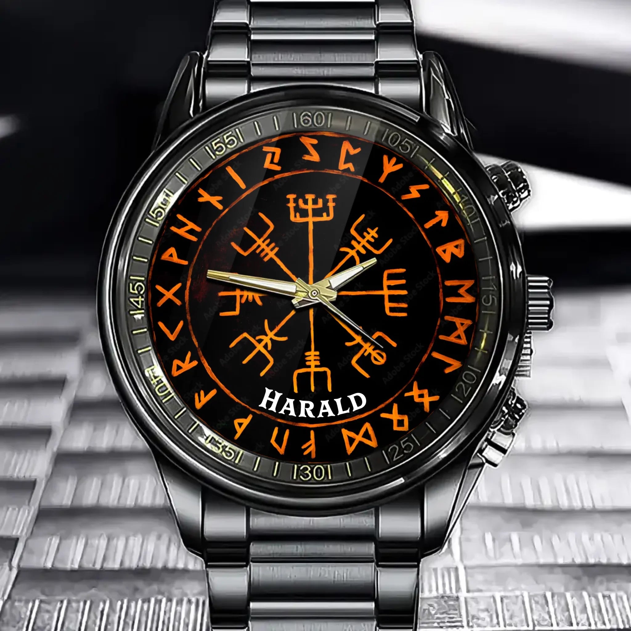 Personalized Vegvisir Viking Compass Watch - Custom Norse Design with Your Name
