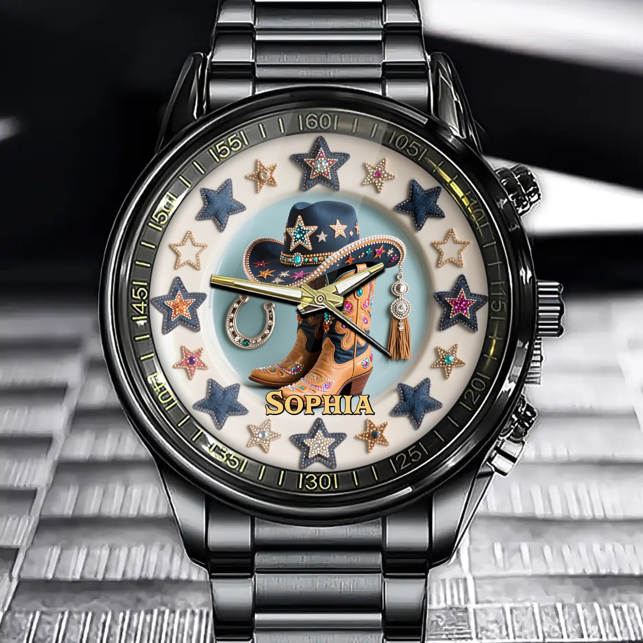 Custom Cowgirl Boots and Hat Watch - Add Your Name to This Unique Western Style