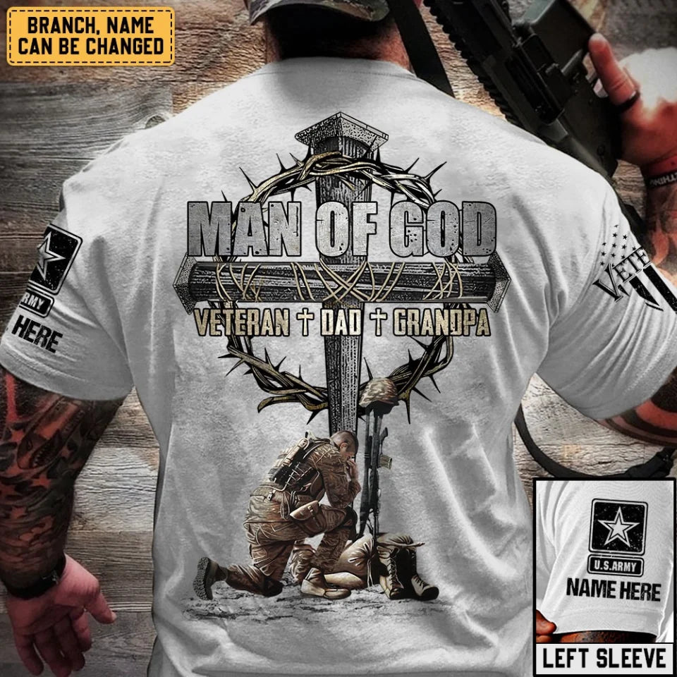 Man Of God Veteran Dad Papa Personalized Shirt For Father's Day Veteran Grandpa