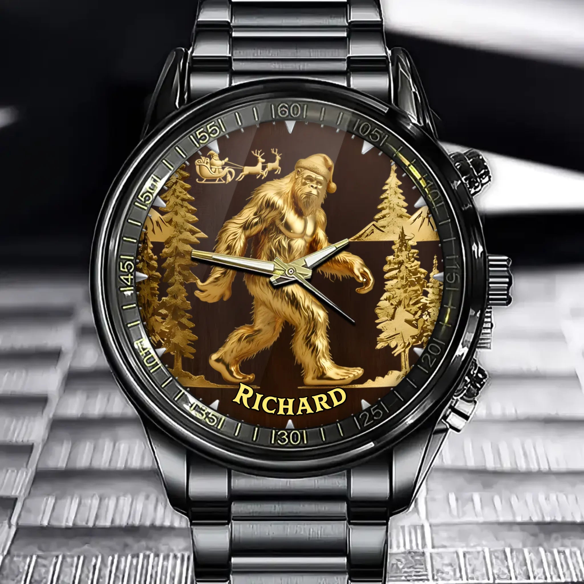 Personalized Christmas Bigfoot Watch - Custom Name, Distinctive Forest & Cryptid Timepiece