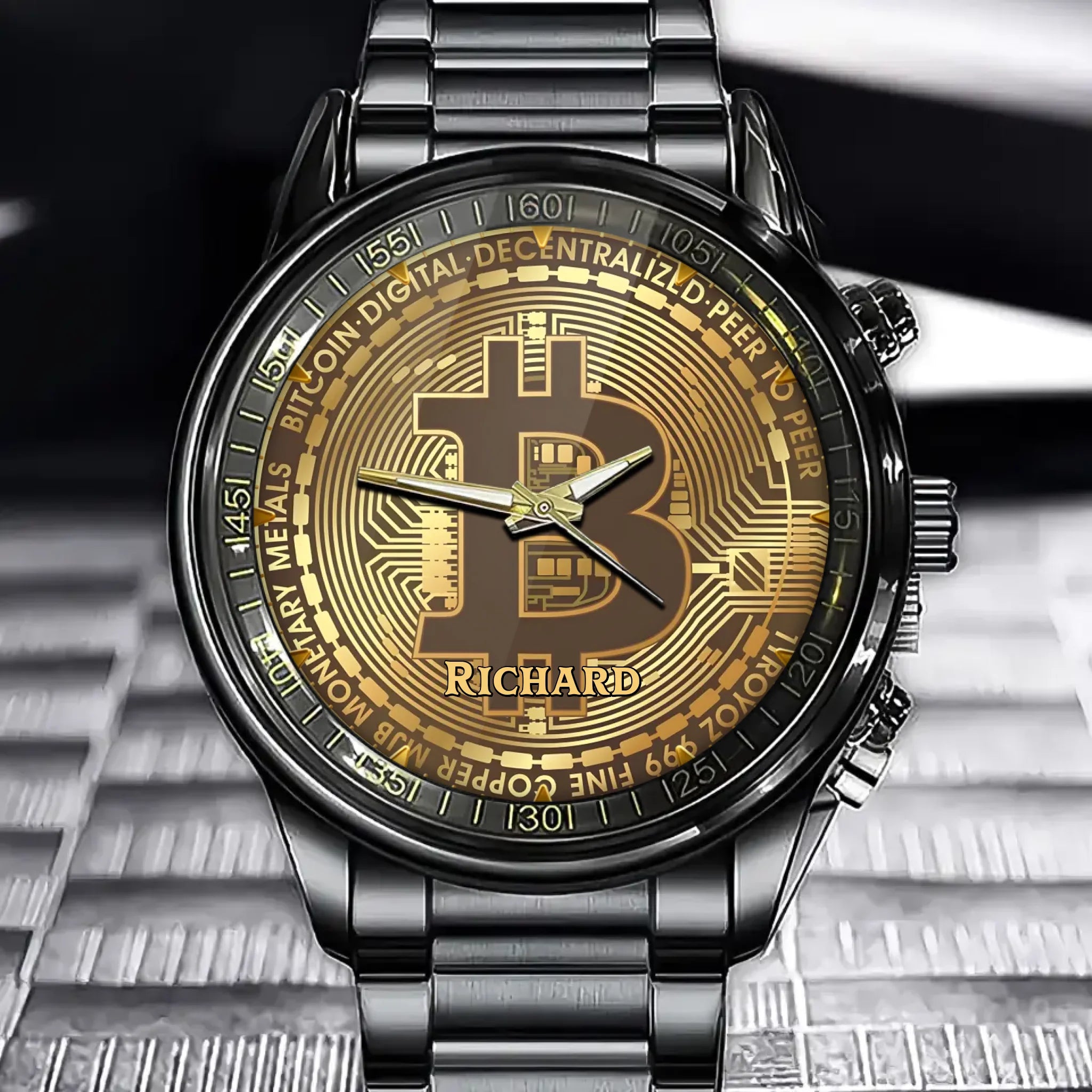 Personalized Crypto Collector’s Watch – Custom Bitcoin Design with Your Name
