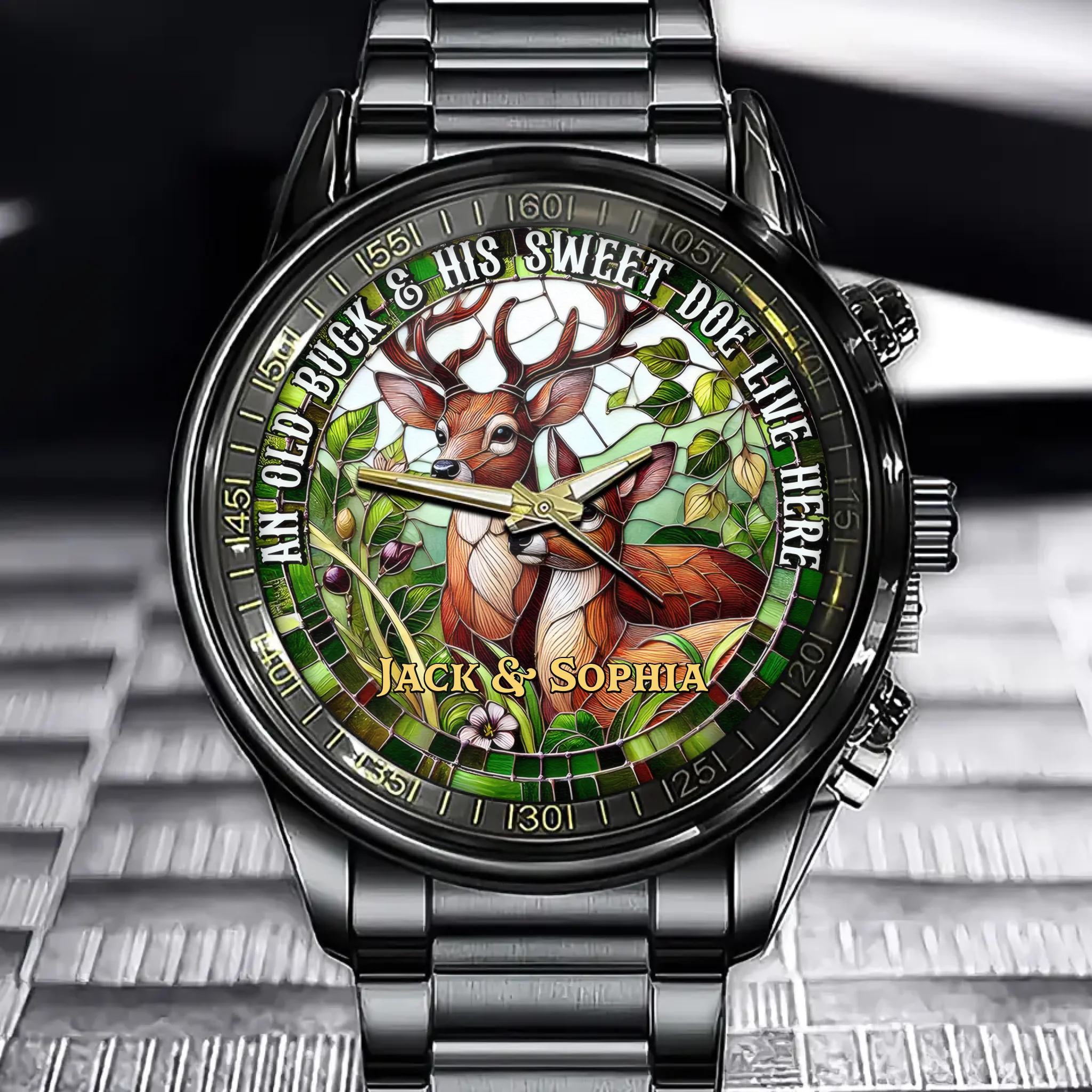 Personalized Deer Couple Stained Glass Print Style Watch – Deer Hunting Couple Live Here