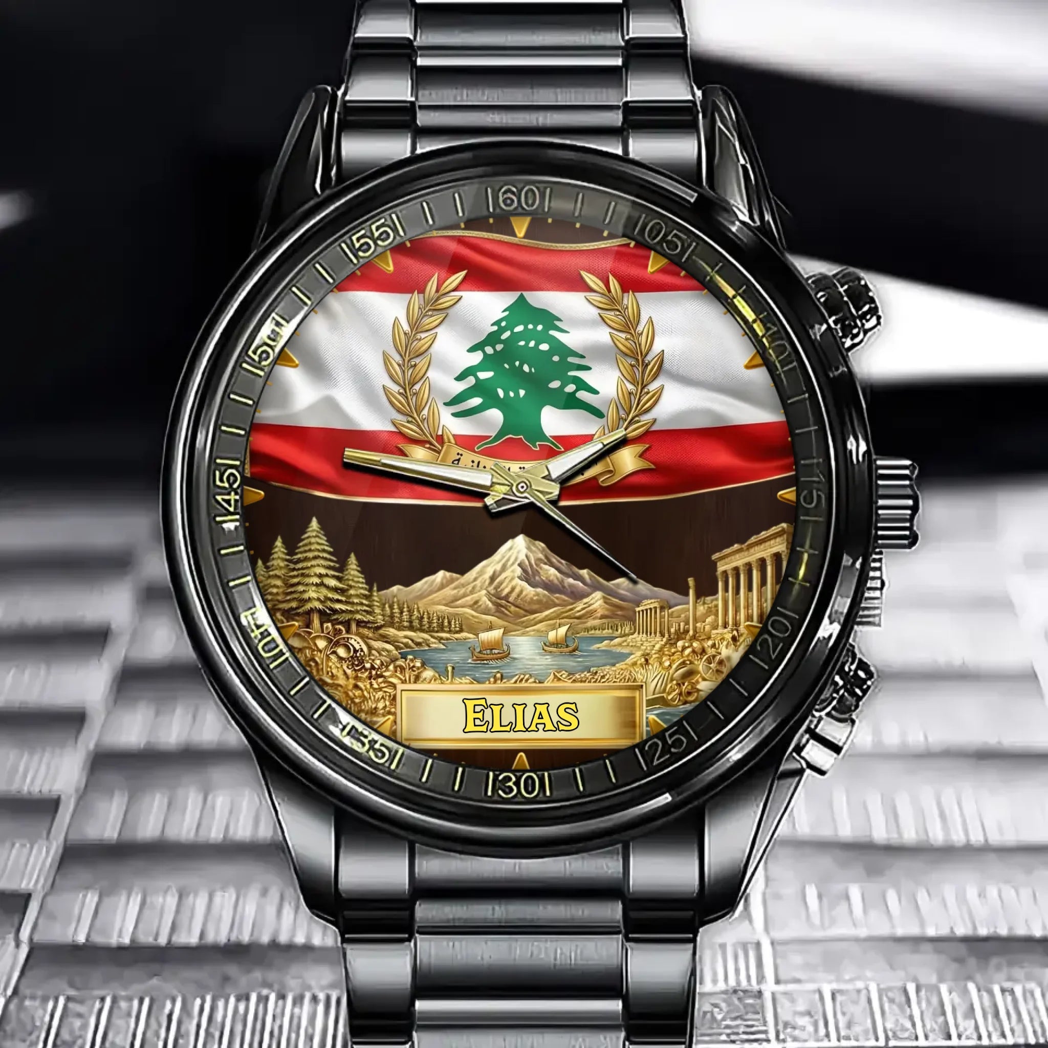 Personalized Lebanon Coat Of Arms Watch - Custom Engraving For National Pride