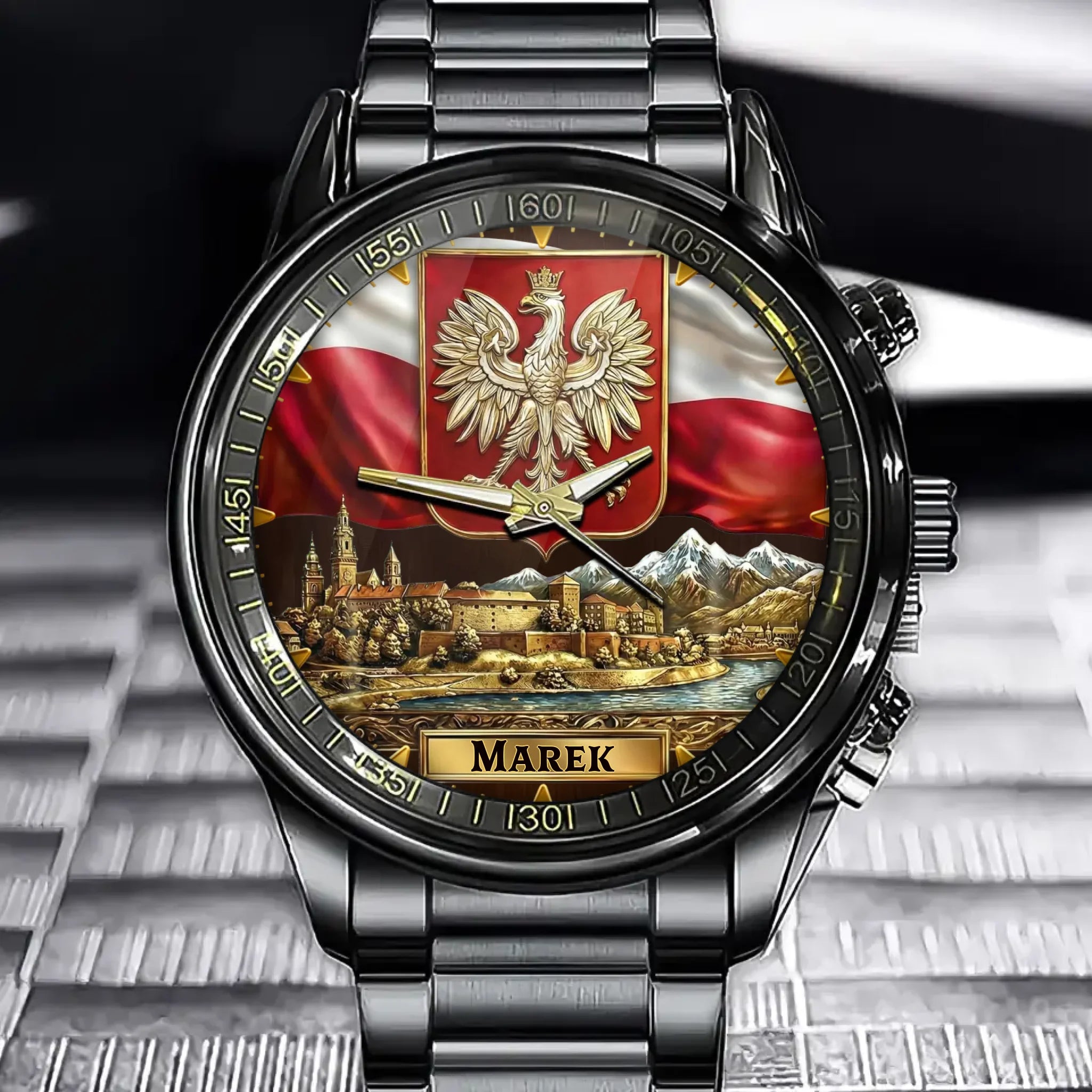 Personalized Name Poland Flag Emblem Watch – Polish Pride Gift