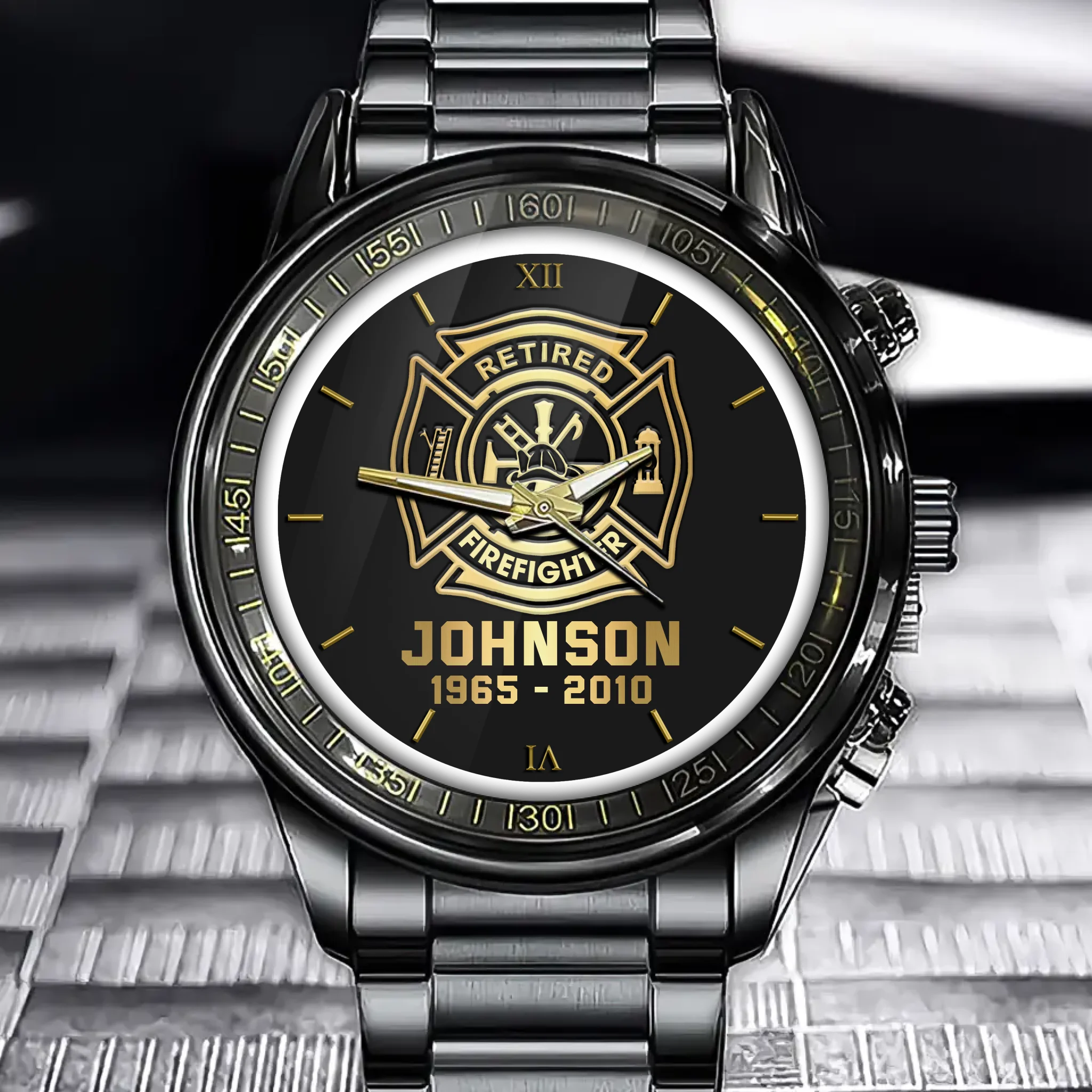 Personalisierter Feuerwehrmann im Ruhestand, benutzerdefinierter Name und Dienstzeit Armbanduhr