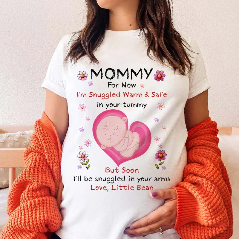 Personalized Shirt - Lovely Baby Bump - I'll Be Snuggled In Your Arms - Happy First Mother's Day - Trendy 2025