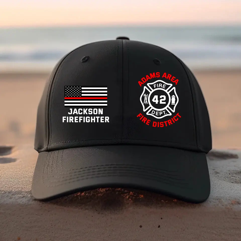 Personalisierte US-Feuerwehrflagge, benutzerdefinierter Name, Abteilung und Ausweis, schwarze Kappe bedruckt