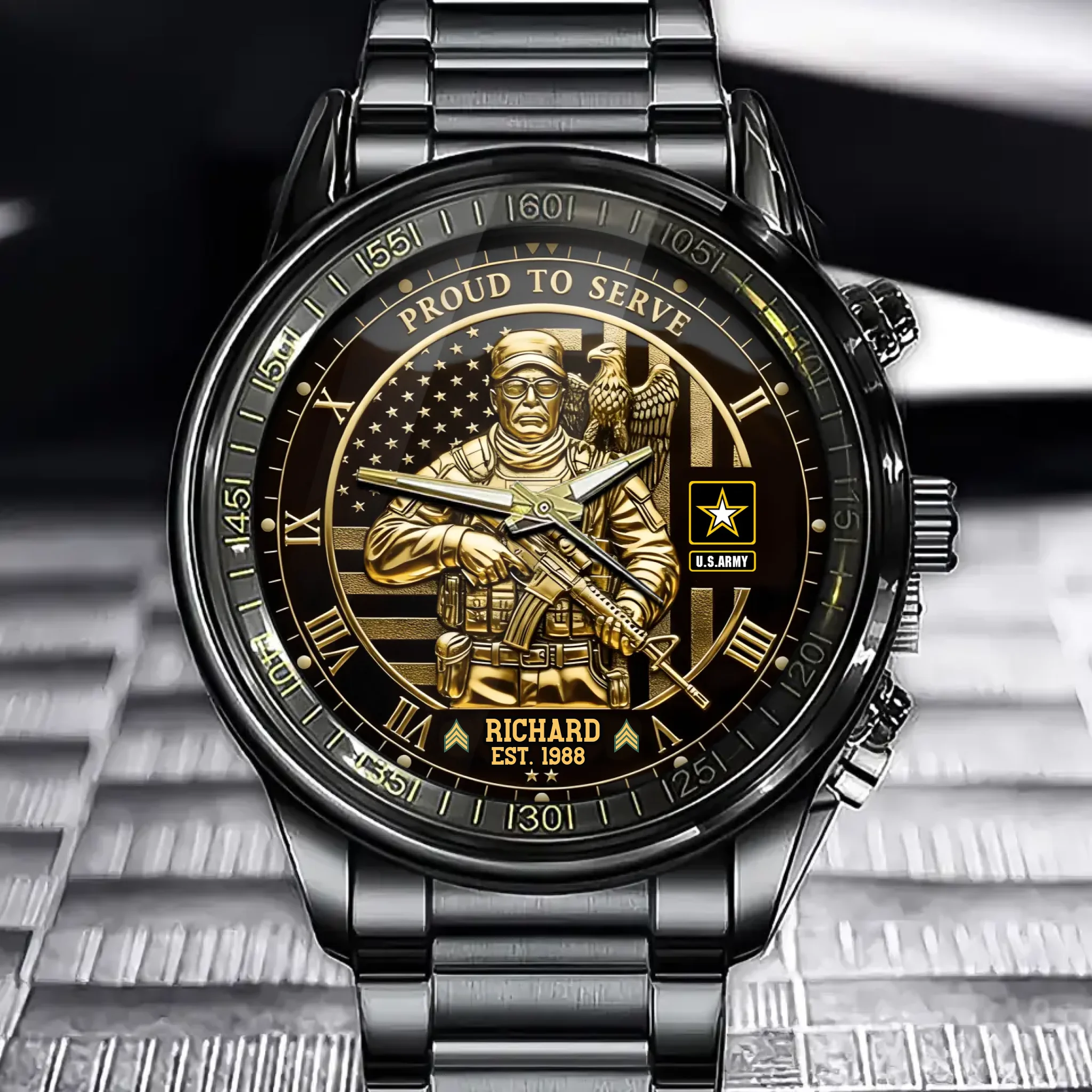 Personalized Veteran Proud To Serve Watch – Patriotic Soldier Design